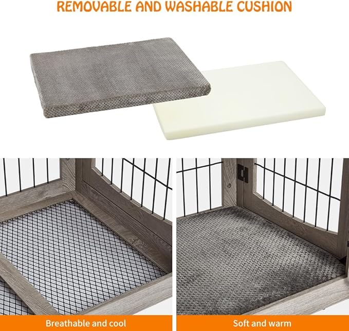• 【Dog Kennel Indoor with Cushion】Matching cushion in the crate take your dog a warm and more comfortable sleep, and also we use the metal net at the bottom, better air permeability.
