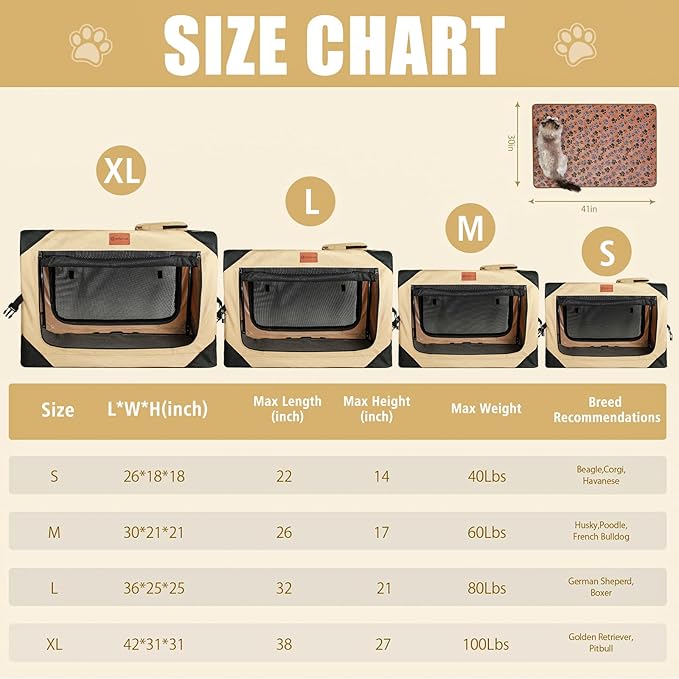 • Soft Dog Crates for Medium Dogs: Size of 30 inch X 21 inch X 21 inch, Dog crates for medium dogs is available to accommodate large dog breeds. Please measure the height and weight of the pet before placing an order, finding the perfect fit for your furry companion.