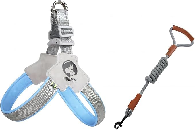 Pet Dog Cat Harness, Pet Harness with Leash Set, Adjustable Puppy Harness Comfortable Reflective Easy Control Dog with Leather Leash, No-Pull No Choke Pet Harness for Training Walking