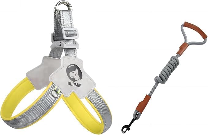 Pet Dog Cat Harness, Pet Harness with Leash Set, Adjustable Puppy Harness Comfortable Reflective Easy Control Dog with Leather Leash, No-Pull No Choke Pet Harness for Training Walking
