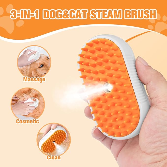 - 【3 in 1 Cat Steam Brush】:Innovative cat steam brush built-in steam technology for hair removal,spray cleaning and massaging.The steaming dog brush cleans,moisturizes and removes dead hairs.Reduce the frequency of bathing.Massage promotes blood circulation.This steam cat brush for shedding is designed to keep your best friend's coat healthy and shiny
