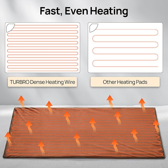 • Generously Sized for Large Pets: The 59'' x 39'' dimensions of TURBRO's heating pad is perfect for larger breeds like Golden Retrievers, Great Danes, and Saint Bernards. This spacious design ensures ample room for your pets to stretch out and bask in soothing warmth from head to paws.