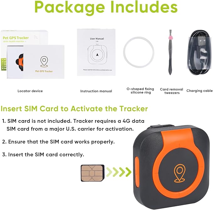 - 【Activate with 4G SIM Card and App】Activate with a 4G data SIM card ( not included in package ) from a major U.S. carrier. Make sure the SIM card is capable of using data.GPS tracker for dogs is accessible through the free Tuya APP, easily activated to tether the device. Secure your pet's location