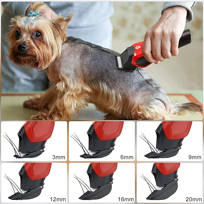 • Variable Length: Full set of combs to create a full range of lengths 3 mm/6 mm/9 mm/12 mm/16 mm/20 mm.The adjustable clipping comb is applicable for clipping hair of different lengths; and the detachable guide combs make for quick, easy comb changes and increased versatility