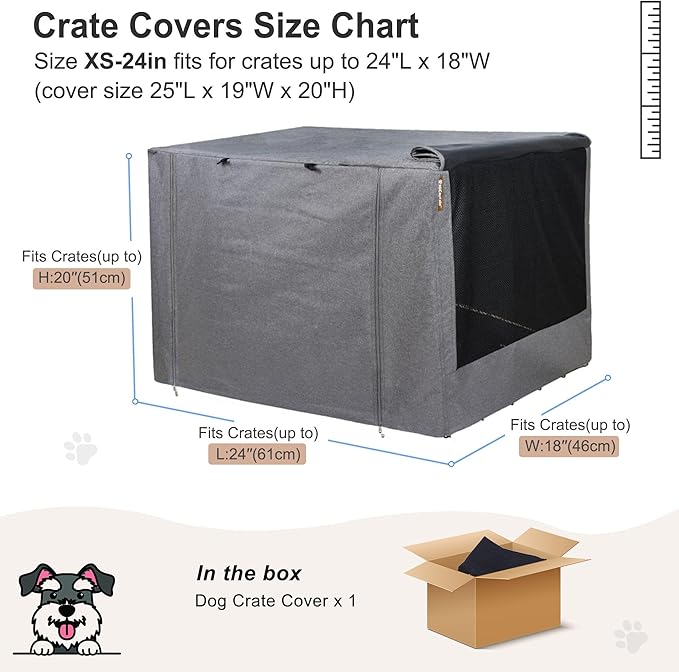 HiCaptain Grey Dog Crate Cover for 24 Inches Wire Crates, Heavy-Duty Polyester Indoor Dog Kennel Cover Universal Fit for 1 2 Doors Standard Metal Cage (Grey)
