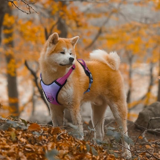 - No Pull, No Choke: Our non-pulling dog harness is specially designed with 4 metal leash rings for safer dog walks. Use the chest attachment clip to stop your dog from pulling on walks, perfect for dog training or dogs who tend to pull. The back clip is great for daily walking, jogging, hiking, etc. Sturdy Top Handle for better control the sudden and dangerous movements of your dog to ensure security.