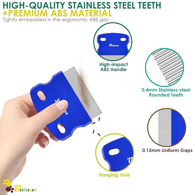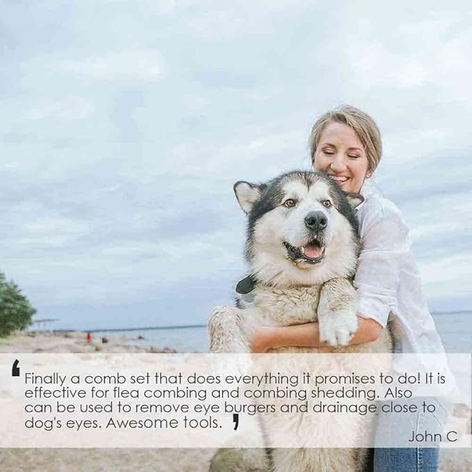 • 【UNIQUE DESIGN】Every comb tooth is finely polished, won’t scratch your pet’s skin while easily removing lice, flea, mess, mucus, stain etc. The short-needle comb for short hair pet head top, long-needle comb for long hair back cleaning, large stainless steel teeth with grip comb for large pet back hair cleaning and soft fur nearby eyes, ears and fine hair of the legs.