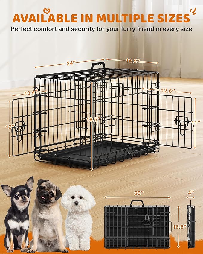 Yaheetech 24 inch Dog Crate Double Door w/Divider for Puppy Collapsible Metal Crate with Removable Tray Wire Kennel Pet Crate for Small Dogs Portable Travel Cage, Black