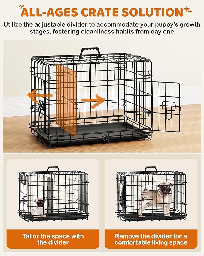 • Versatile Dog Crate for All Stages: From playful puppies to adult dogs, this dog crate with divider adapts to every stage. Whether teaching your puppy good potty habits or helping them create a cozy, designated sleeping area, this adjustable divider helps tailor the space to ensure comfort and convenience