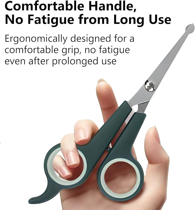 • Safety is our top concern. That's why we've equipped our grooming scissors with rounded tips. This design minimizes the risk of accidental pokes and ensures a painless grooming session for your pet.