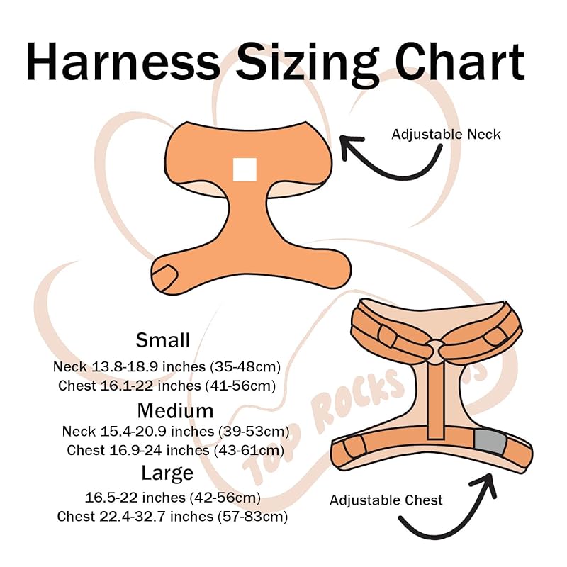 • Small: Neck circumference 13.8 to 18.9 inches, chest 16.1 to 22 inches