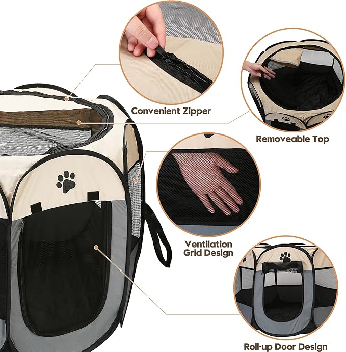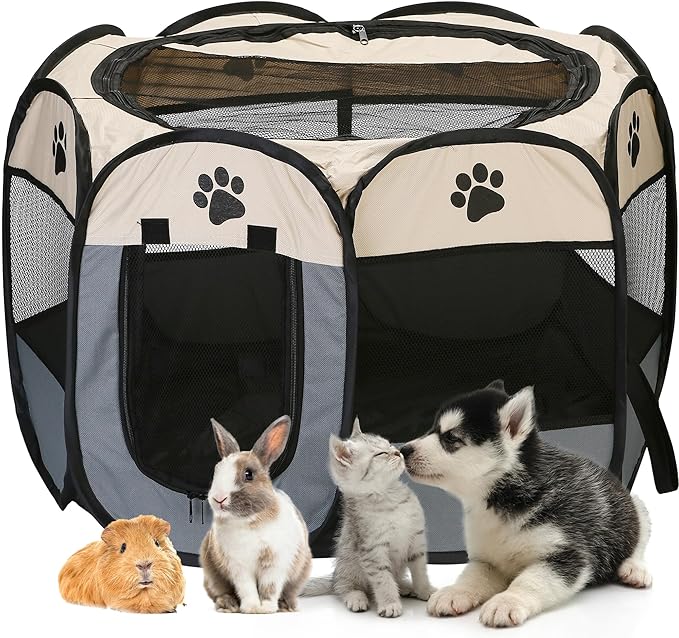 • Versatile: Great for indoor and outdoor use, our playpen is perfect for traveling, camping, and those cute animals you love. Give your pets the freedom they deserve!