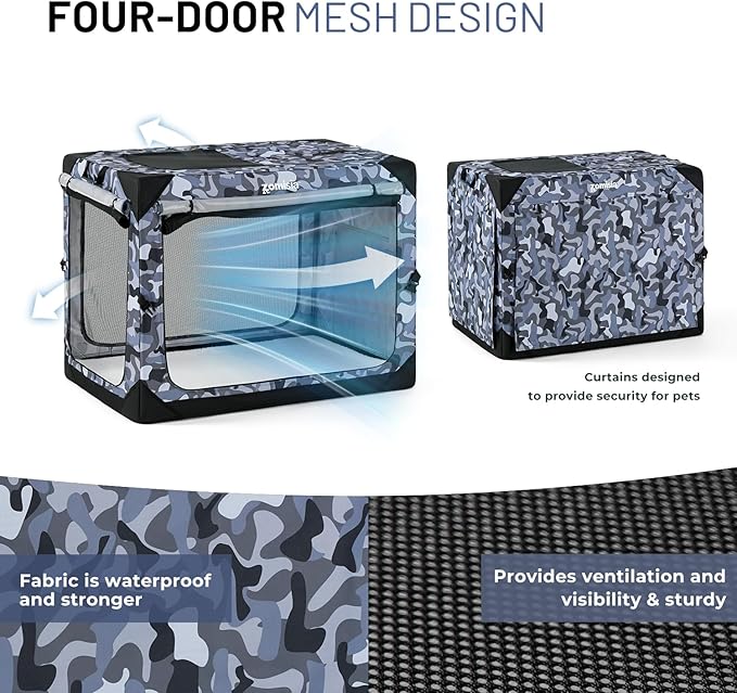 Collapsible Dog Crate for Medium Dogs - Portable Dog Travel Crate Soft Sided 30 Inch with Mesh Windows and 3-Door Curtains, Foldable Dog Kennel for Indoor and Outdoor, Camo