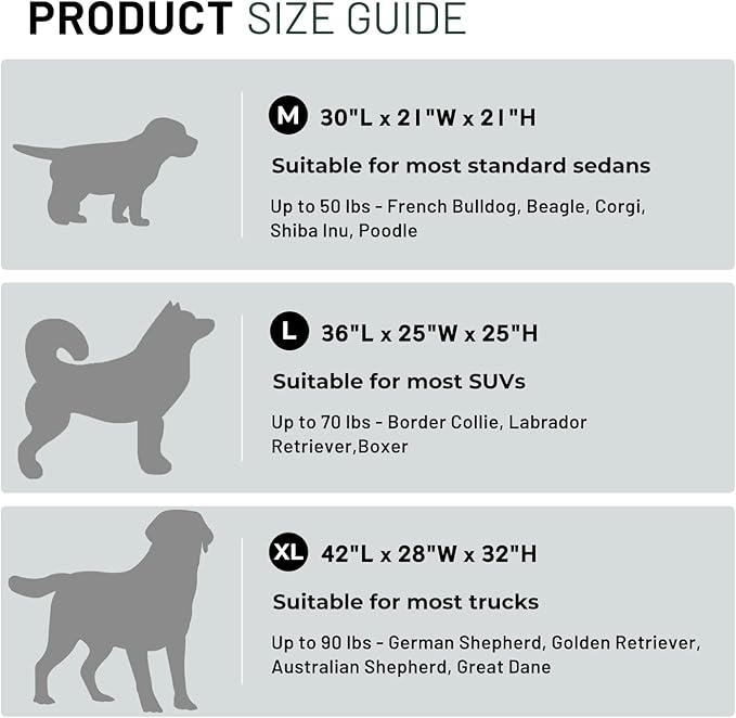 • Multiple Size Options: Available in three sizes to accommodate different breeds, from small to large dogs. Before purchasing, please measure your dog’s standing length, width, and height and refer to the size chart in the images to ensure you choose the correct size.