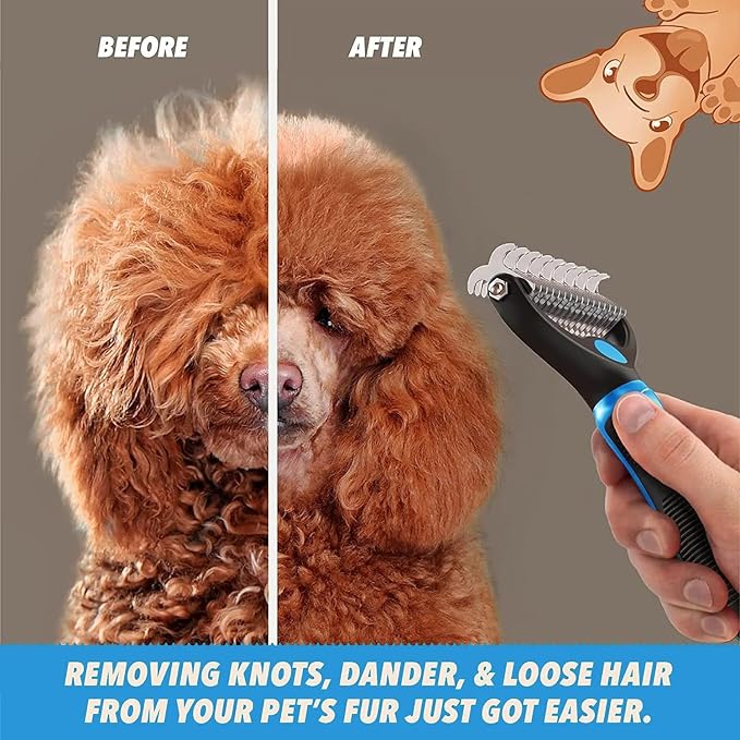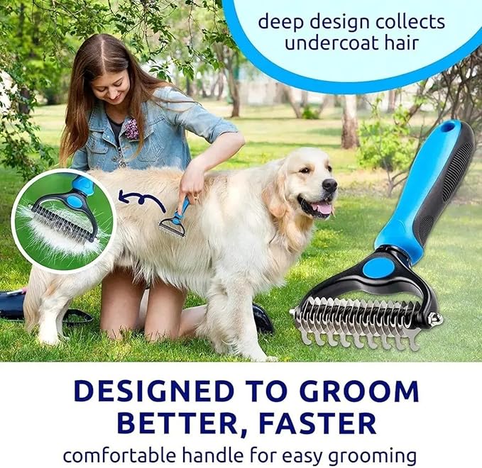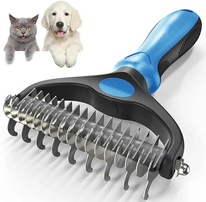• ๐Ÿ˜บ [Effective Dehedding Tool] :This undercoat rake gently removes loose hair, and eliminates tangles, knots, dander and trapped dirt.Perfect solution for dogs and cats with thick fur or dense double coat care