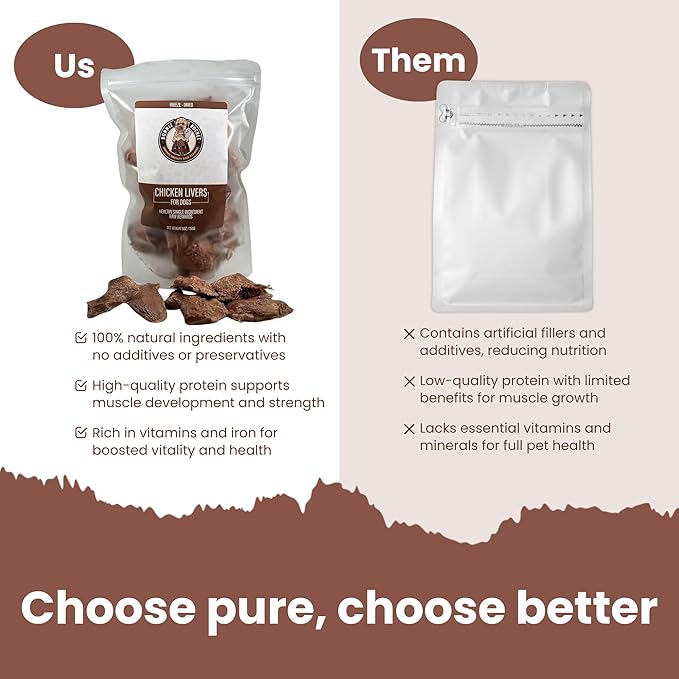 • High-quality protein: The dog treats support muscle development and maintenance in pets, ensuring they stay active and healthy. The freeze-dried chicken liver is a rich source of protein that helps in building strong muscles and sustaining energy levels.
