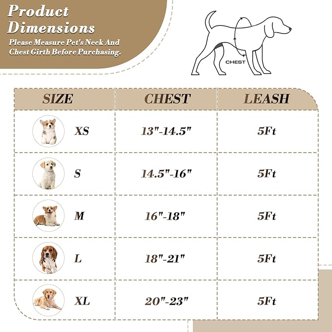 • Step-in Dog Harness: This dog vest harness features a step-in design and adjustable quick-release buckles, making it fast and easy to put on and take off. Simply place your dog's front legs into the harness and fasten it effortlessly.