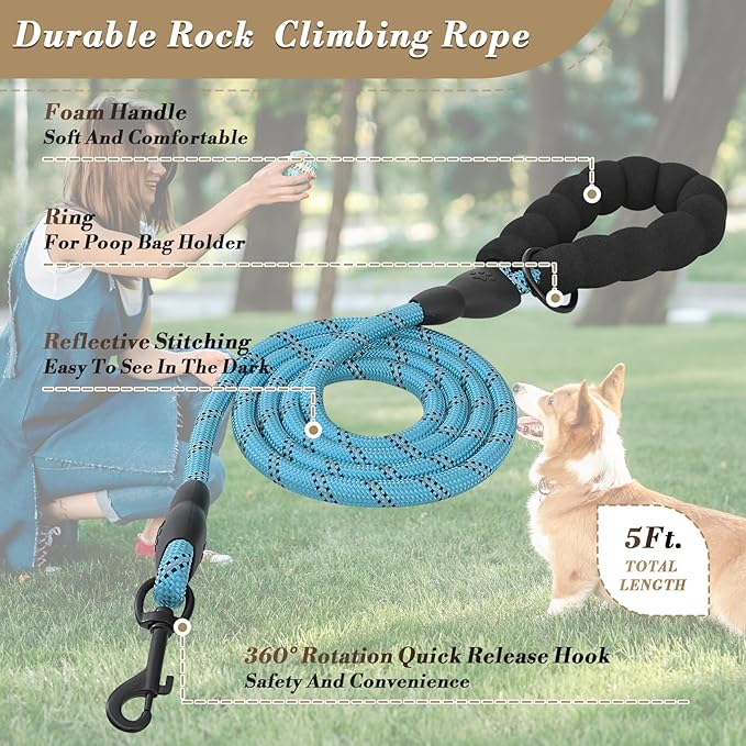 • Dog Harness and Leash Set: This plaid dog harness and leash set features a comfortable padded handle and a swivel safety hook for secure attachment to the harness. The 5 ft leash is made from heavy-duty climbing rope and features safety reflective threads, making it perfect for daily walks, runs, and training sessions.