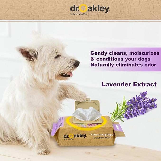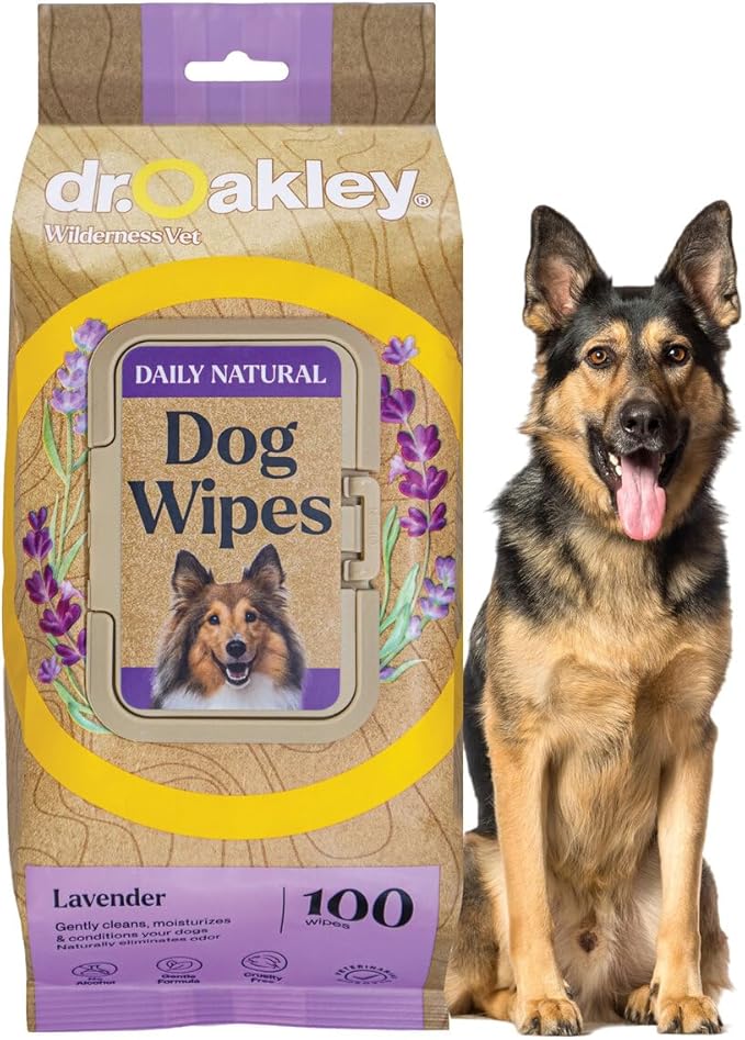 Daily Natural Dog Wipes, Lavender Scented, 100 Ct, Gentle, Moisturizing, Odor-Eliminating, Alcohol-Free, Vet Approved