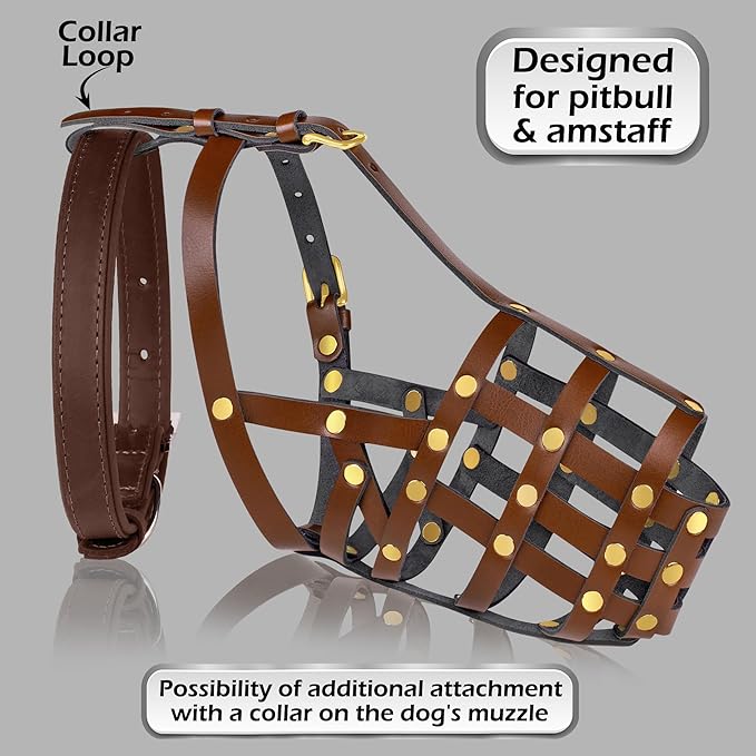 • Materials: Crafted from premium genuine leather with stainless-steel rivets, our cage muzzle ensures safety and durability for large dogs. The adjustable leather straps provide a secure, comfortable fit, preventing slipping during use.