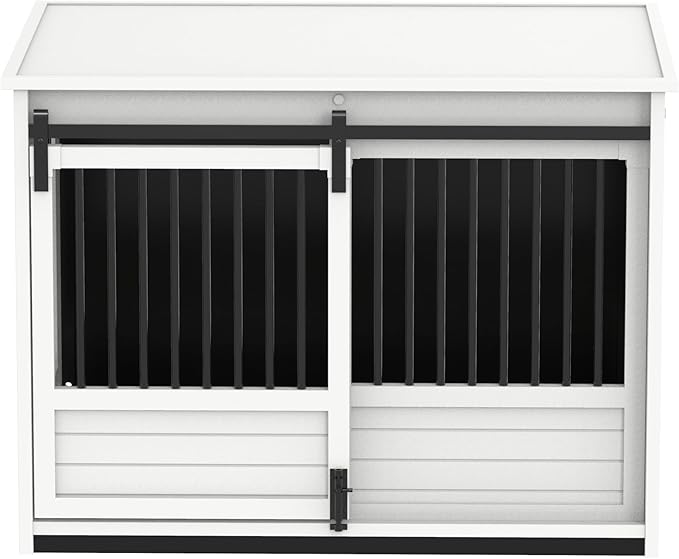 New Age Pet ECOFLEX Barn Door Dog Crate End Table - Antique White, Large - Durable Wood Plastic Composite with Stainless Steel Latch, Easy Assembly, 10 Year Warranty