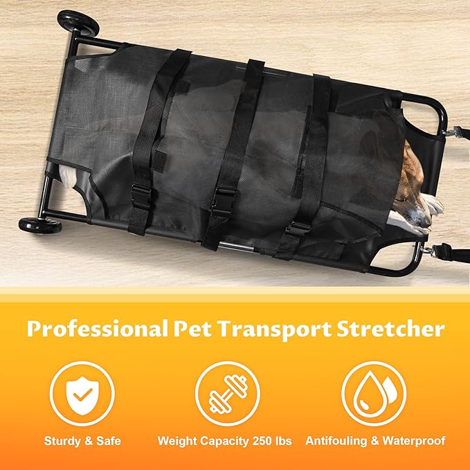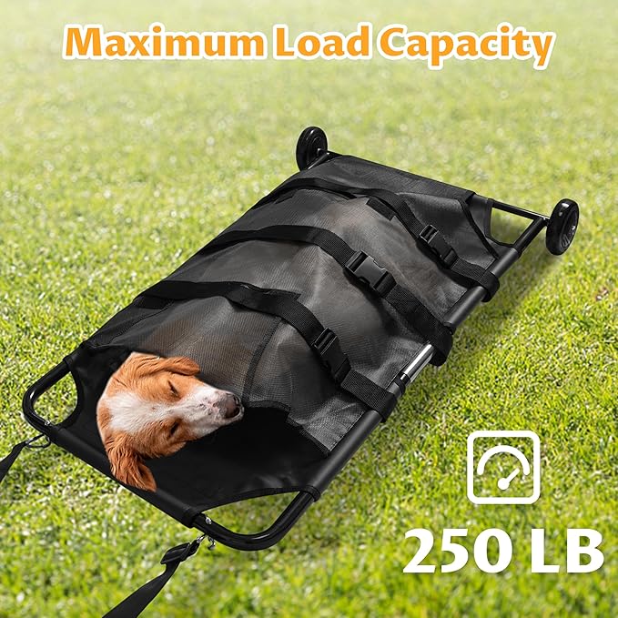 • 【For Large Pets】This pet transport stretcher has a maximum weight capacity of 250 pounds and measures: 45 x 22 inches. Makes transporting your pet easier and more suitable with larger pets.