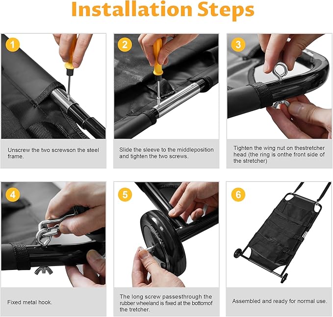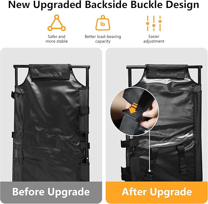 • 【Safe & Reliable】The main body of our pet stretcher is made of high-strength steel tubing, sturdy and durable. With the new upgraded thickened PVC protective cover. Meanwhile, the stretcher has a new buckle design on the back, allowing you to easily adjust the size according to your pet's size, while the load-bearing capacity is better than Velcro, making it safer for you to transport your large pets.