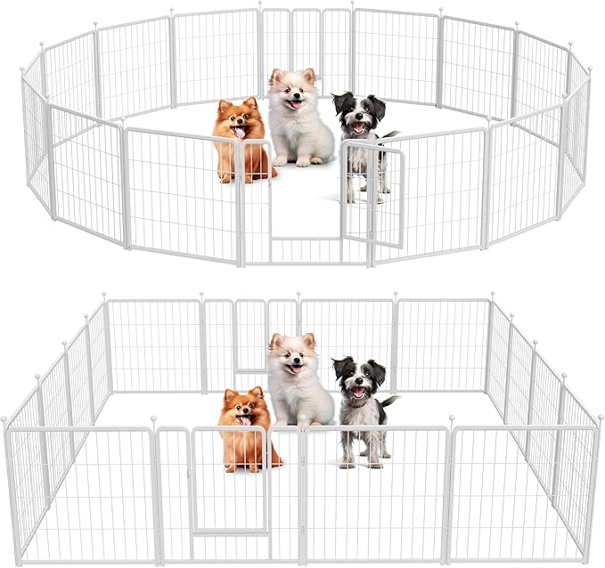 Simple Deluxe Dog Playpen, 24" Height 16 Panels Fence with Anti-Rust Coating, Metal Heavy Portable Foldable Dog Pen for Small/Medium Dogs RV Camping, White