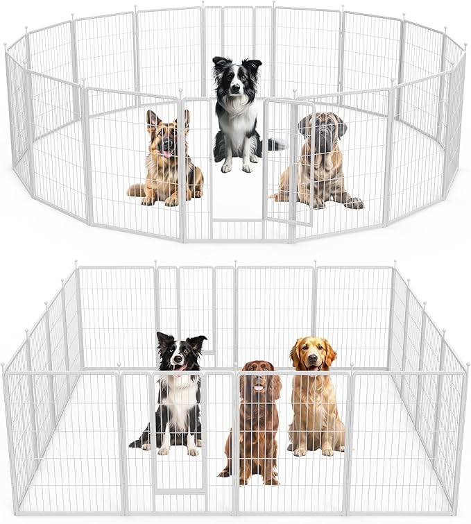 • 【Portable & Stackable Design】This dog playpen for medium/large dogs indoors is ideal for on-the-go use or space organization. Foldable for storage makes it easy for package and transportation.