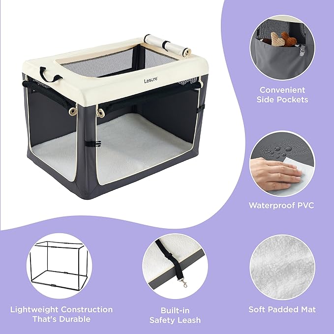 • Safety First, Adventures Always: Engineered with a sturdy frame and scratch-resistant mesh, this crate is a must-have for your adventurous companion. Escape-proof zippers combine with a built-in safety belt and a reinforced PU leather buckle for easy in-car use—so you can travel with confidence, knowing your buddy is snug and secure. Plus, the dual layer bottom provides a safety net for your peace of mind.