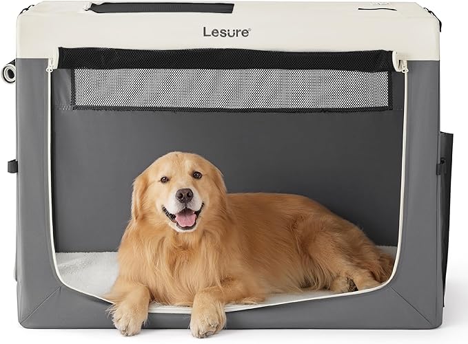Lesure Collapsible Travel Dog Crate for Small Dogs, Portable Soft Dog Crate for Outdoor & Indoor, Folding Fabric Dog Kennel with Handle, 42 Inch Heavy Duty Pet Carrier (Grey)