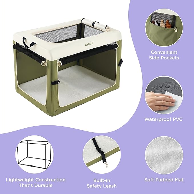 Lesure Collapsible Travel Dog Crate for Small Dogs, Portable Soft Dog Crate for Outdoor & Indoor, Folding Fabric Dog Kennel with Handle, 36 Inch Heavy Duty Pet Carrier (Green)