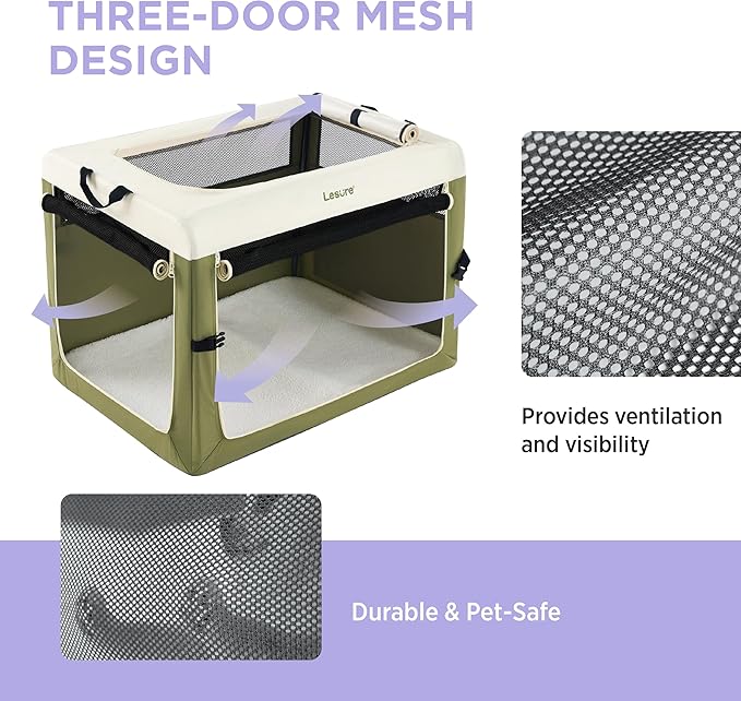• Safety First, Adventures Always: Engineered with a sturdy frame and scratch-resistant mesh, this crate is a must-have for your adventurous companion. Escape-proof zippers combine with a built-in safety belt and a reinforced PU leather buckle for easy in-car use—so you can travel with confidence, knowing your buddy is snug and secure. Plus, the dual layer bottom provides a safety net for your peace of mind.