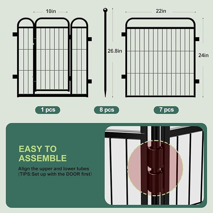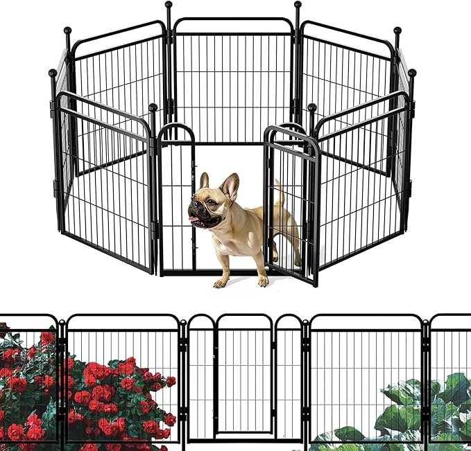Gardner Pet Dog Playpens, 24" H 8 Panels Dog Pen Outdoor/Indoor Dog Fence Exercise Pen for Small/Medium Dogs, Foldable Pet Play Yard Gate with Gravity Automatic Lock, Pet Playpen, Black