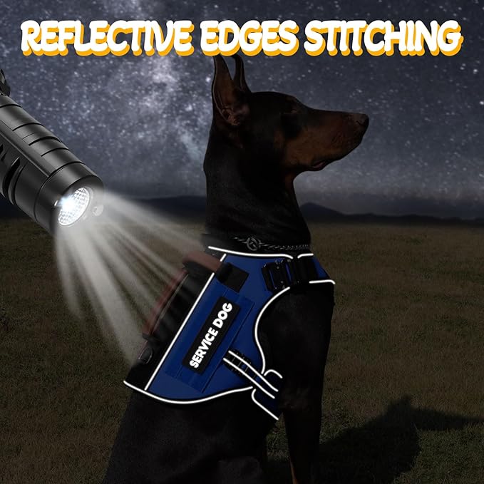Service Dog Vest - HEYCAHVA Tactical Dog Harness Full Metal Buckles Dog Vest for Large Medium Dog Reflective No Pull Dog Harnesses with Leather Handle, Hook & Loop for Hiking Training (Blue, XL)
