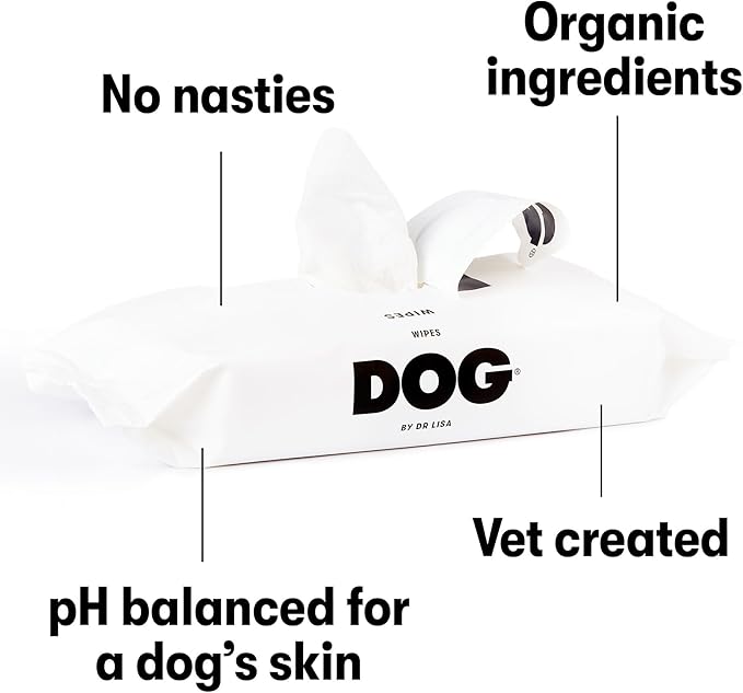 DOG by Dr Lisa - Dog Travel Wipes - Plant-Based - Natural Bathing Wipes for Dogs - Made from 100% Compostable Bamboo - Vet-Created - Vegan - Non-Toxic - Travel Size - Carton (20 per Box)