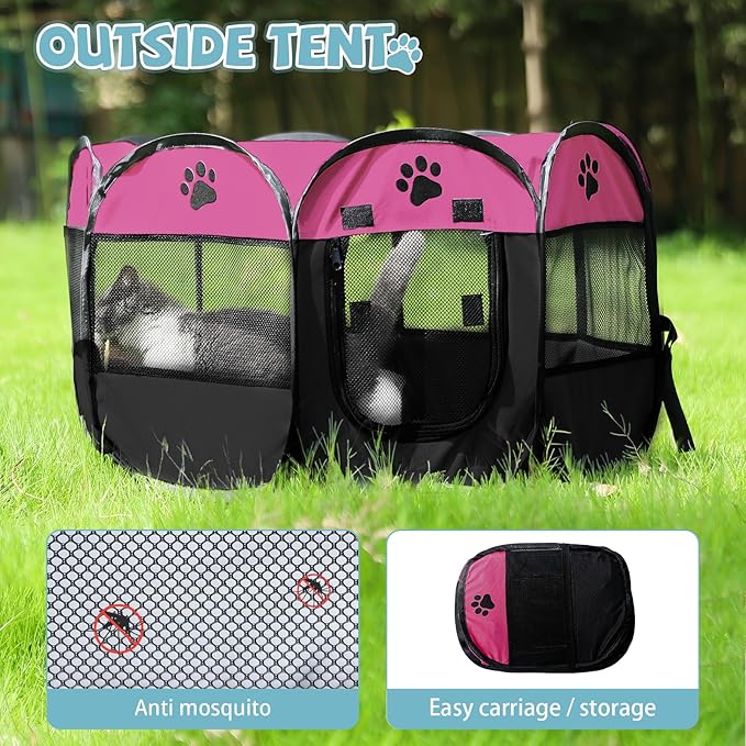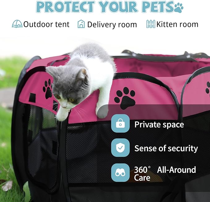 • 😺Safe & Reliable: The cat playpen is made by oxford fabric, light and durable. Through the black mesh on the top and the other 8 sides, you can see each other easily, which will put both your mind at peace. The airy ample space can also prevent you pets from feeling stifling or oppressed. A perfect place for your pets to deliver, recover or rest.