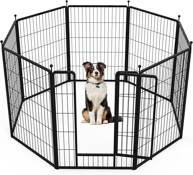 HealSmart Dog Playpen Indoor, Puppy Playpen Indoor Outdoor for Yard, Camping, RV, 40" Height 8 Panels Heavy Duty Dog Pen for Medium/Large Dogs, Black