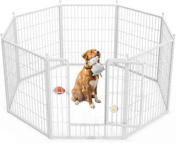 HealSmart Dog Playpen Indoor, Puppy Playpen Indoor Outdoor for Yard, Camping, RV, 32" Height 8 Panels Heavy Duty Dog Pen for Small/Medium Dogs, White