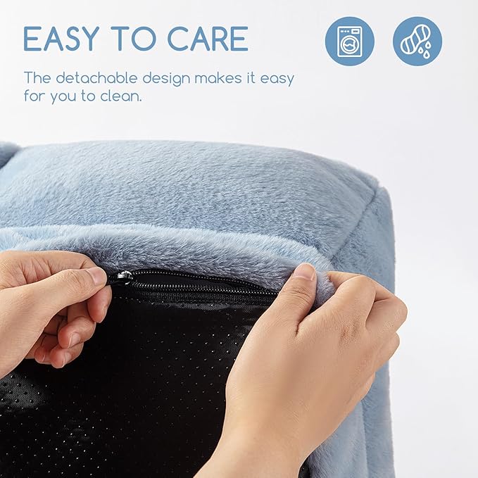 Hollypet Fluffy Plush Pet Cat Couch Soft Calming Pet Sofa Beds for Medium Small Cats and Dogs, Sky Blue