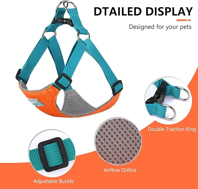 Beirui Small Dog Harness and Leash Set, No Pull Step-in Harness for Puppy, Lightweight Air Mesh Pet Harness for Medium Dogs (Orange, M)