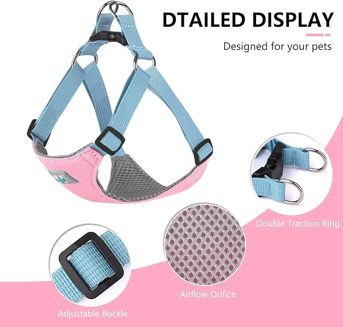 Beirui Small Dog Harness and Leash Set, No Pull Step-in Harness for Puppy, Lightweight Air Mesh Pet Harness for Small Dogs (Pink XS)