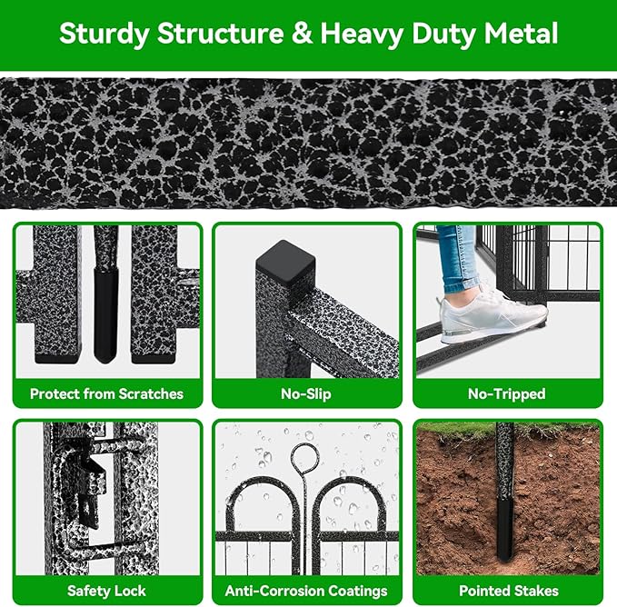 • 【Sturdy Structure & Stable Ground Stakes】Kfvigoho metal stakes are designed round top, which can be pounded into the ground for greater stability, this dog fence with sturdy structure, so dogs can't knock it down and keep them confined in a safe area, the pet pen works great for small, medium and large dogs and rabbits, ducks, turtles etc