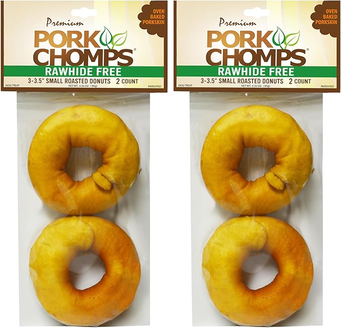 Pork Chomps Roasted Pork Skin Dog Chews, 3-inch Donuts, 2 Count (Pack of 2)