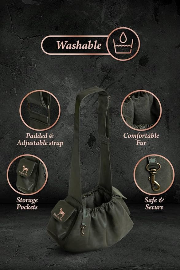• Luxury dog sling carrier, fashioned from top-tier vegan leather. Designed with your convenience in mind, made with washable materials. This dog sling carrier combines style and practicality, to meet all your expectations.