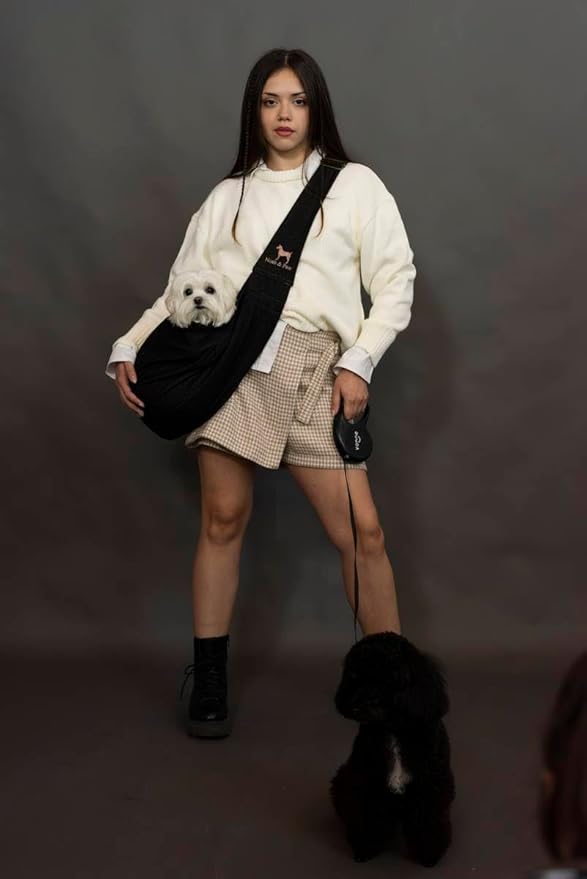 Noah & Paw Dog Sling Carrier for Small Dogs 5-18lb, Dog Sling for Small Dogs and Cats, Dog Carrier with Adjustable Padded Strap, Premium Denim, Lined with Fur, Double Safety Feature, Machine Washable