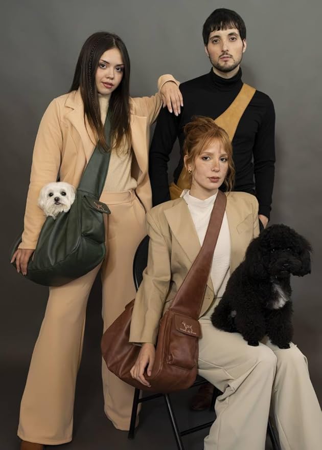 • Luxury dog sling carrier, fashioned from top-tier vegan leather. Designed with your convenience in mind, made with washable materials. This dog sling carrier combines style and practicality, to meet all your expectations.