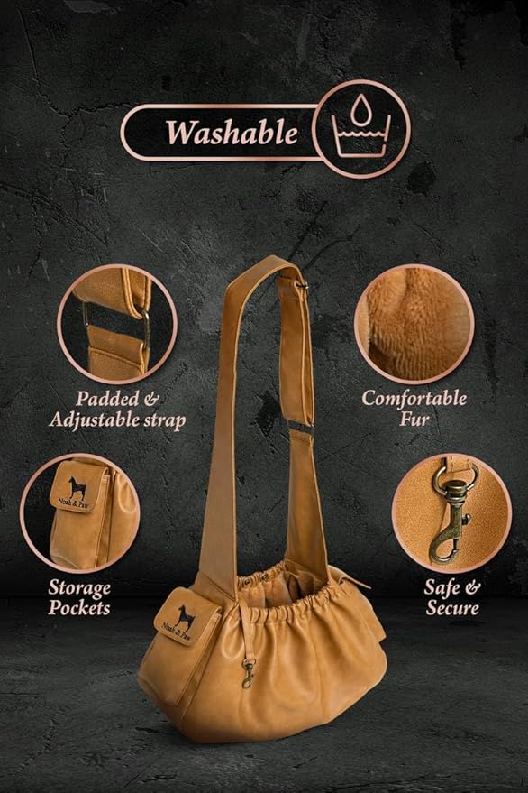 • Luxury dog sling carrier, fashioned from top-tier vegan leather. Designed with your convenience in mind, made with washable materials. This dog sling carrier combines style and practicality, to meet all your expectations.