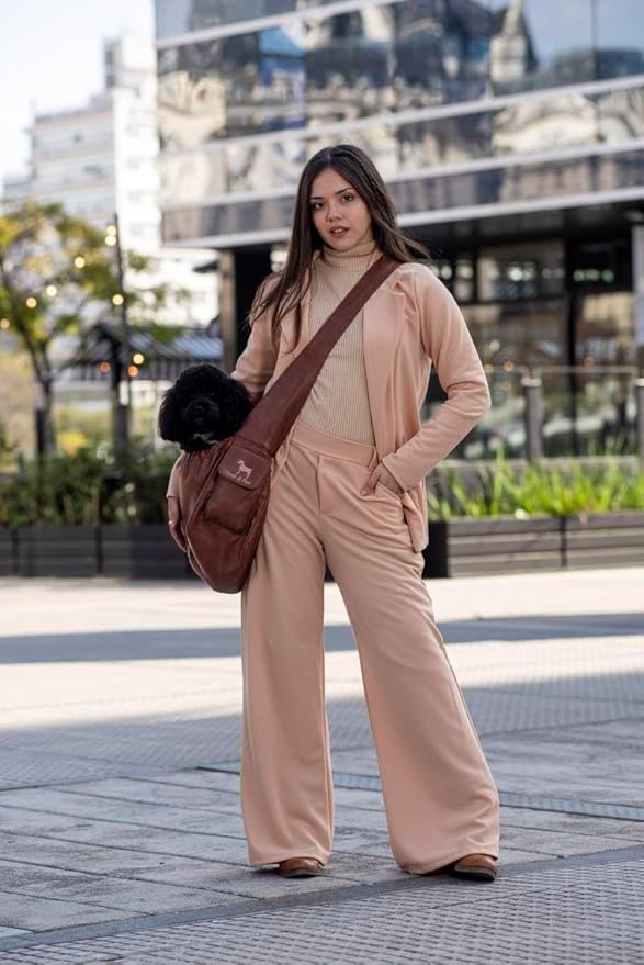 • Luxury dog sling carrier, fashioned from top-tier vegan leather. Designed with your convenience in mind, made with washable materials. This dog sling carrier combines style and practicality, to meet all your expectations.