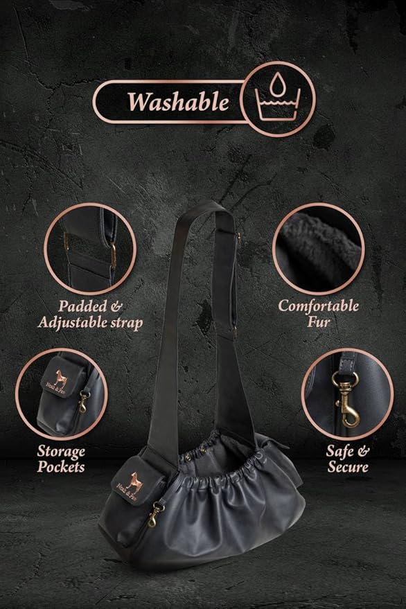 • Luxury dog sling carrier, fashioned from top-tier vegan leather. Designed with your convenience in mind, made with washable materials. This dog sling carrier combines style and practicality, to meet all your expectations.